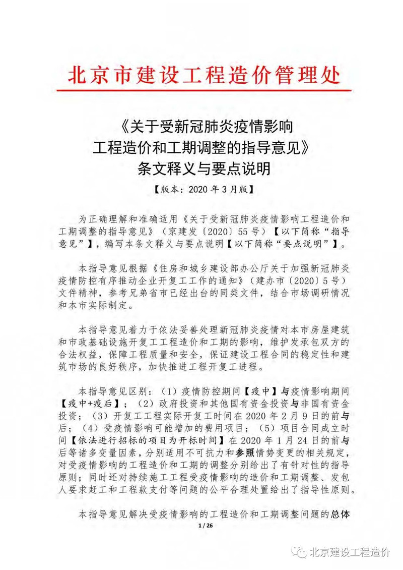 轉發(fā)《關于受新冠肺炎疫情影響工程造價和工期調整的指導意見》條文釋義與要點說明